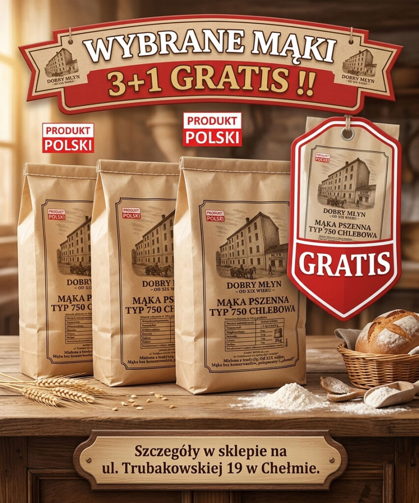Wybrane mąki 3+1 gratis !!Szczegóły promocji w sklepie przy ul. Trubakowskiej 19 w Chełmie oraz telefonicznie +48 82 565 68 65